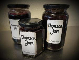 Currently we have Damson Jam made with fruit off our tree in the grounds and Blackcurrant Jelly made with fruit from a member of staff’s garden.